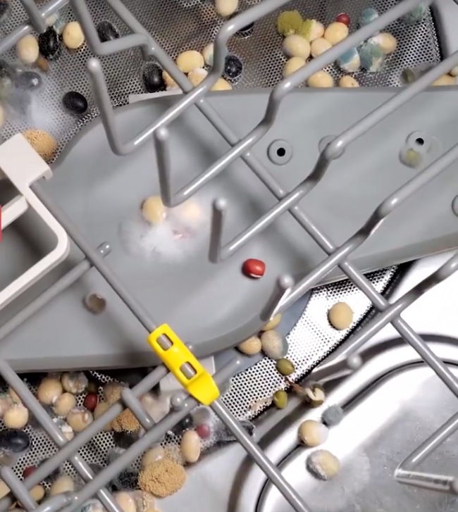 只看数据还不够说服力的话,可以看看热心网友自制的“绿豆”实验。在华帝洗碗机和普通洗碗机工作完毕后,取出洗净的餐具,往两台洗碗机里洒一些绿豆。关闭机门静置两天后观察,普通洗碗机里的绿豆大部分都长成了豆芽,有些地方还滋生出大片白色霉菌。