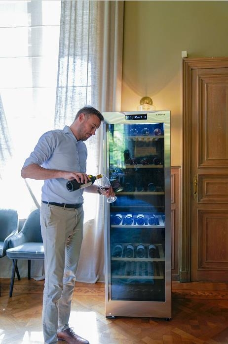 Karel还向大家推荐了一款他钟爱的意大利Primitivo红酒,而这款红酒就存储在卡萨帝酒柜中。Karel介绍说,卡萨帝酒柜可同时为红、白两种葡萄酒提供温度适宜的独立储藏空间,而且这台酒柜可以通过手机App远程查看、调节酒柜内温度,让酒时刻保持良好口感。