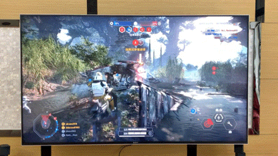 游戏中各种光线武器、快节奏推进下有着宏大场景的星战2前线实际游戏画面。最大感受就是在使用载具快速移动中,屏幕左右两边不模糊了(楼主还没用X9000H之前还以为是游戏自带的效果)