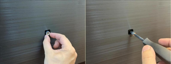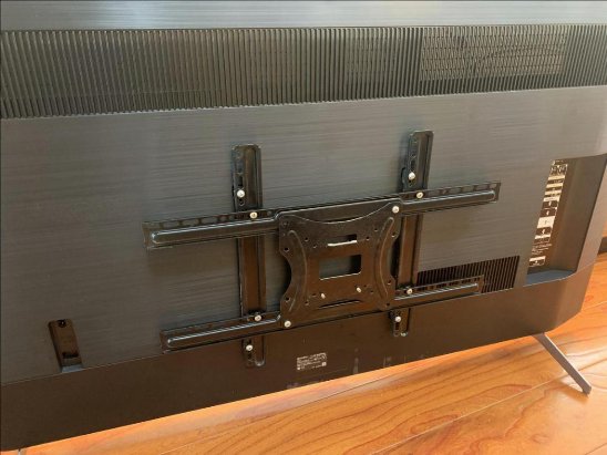 首先卸下电视机安装孔内螺丝,装上悬挂螺丝后再装好电视挂架即可挂墙啦,还是很方便的,楼主因为是自己有挂墙安装的经验,如果没有经验的朋友,楼主还是建议找售后进行安装哈