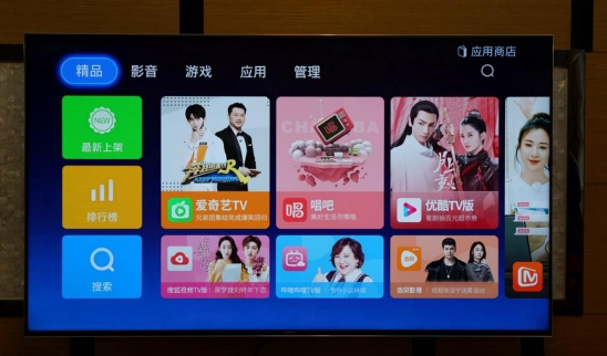 除了电视自带的腾讯视频平台,X9000H内置的应用商店可以下载各种适合电视的APP,平时不仅可以用X9000H看剧,也可以健身、K歌之类,还能支持投屏