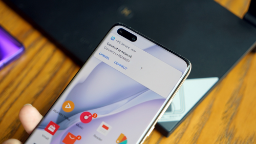 此外,还有值得一提的是,华为路由AX3 Pro还支持非常酷的NFC一碰连网功能,也就是只要手机(安卓手机)打开NFC,接触一下路由器的NFC区域,即可快速连接上Wi-Fi,不需输入密码。这样一来,以后家里有亲朋好友来说,再也不用给他们一个一个地说Wi-Fi密码了,想想都觉得方便。