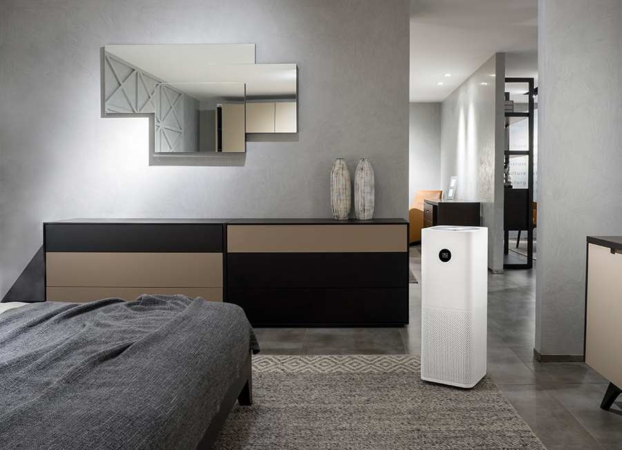 主卧空间更大,需要净化力更强的米家空气净化器Pro。99.98%的H1N1病毒去除率、99.9%除菌率,对甲醛、异味、TVOC等等污染物都具备净化效果。他的净化力最大可适用于60㎡的空间,放在客厅也可以。