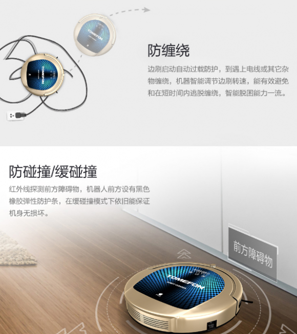 都说细节彰显品质,像斐纳TOMEFON-TF-D60扫地机器人这种真正的实力产品,更是无可挑剔。先是在机器人底部装有智能防跌落红外感应电子眼,可在探测到5cm以上的落差时及时掉头,防止机器摔坏;还在机器人前方还设有黑色橡胶弹性防护条,在发生碰撞的情况下依旧可以保证机身无损坏;再加上一流的智能脱困能力,让机器人能灵活地驰骋在各种复杂家居环境中。