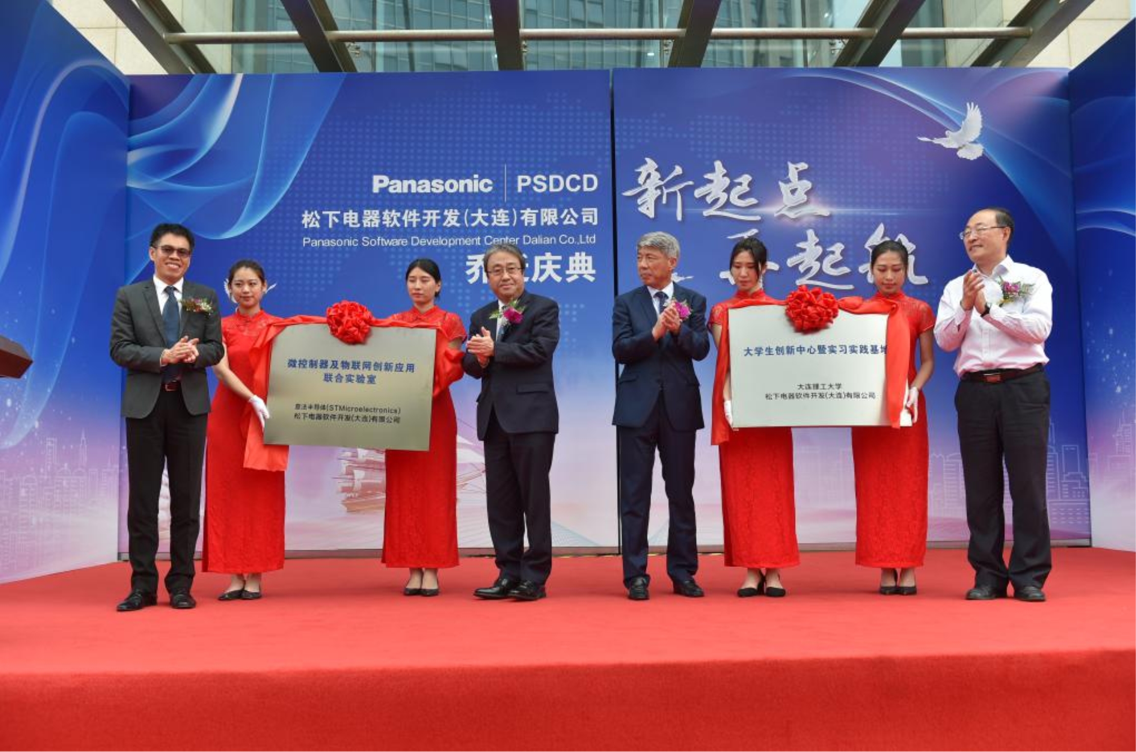 作为本次庆典的一个环节,松下电器软件开发(大连)有限公司和意法半导体集团(ST)、大连理工大学、松下电器(中国)有限公司联合成立的【微控制器及物联网创新应用联合实验室】、【大学生创新中心暨实习实践基地】、【软件开发培训中心】、【软件创新中心】进行了揭牌,与会来宾代表进行了新办公大楼入住的剪彩仪式,并进行了航拍合影。